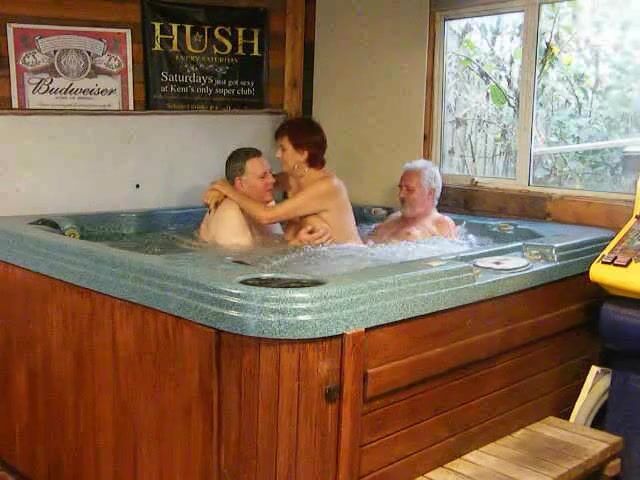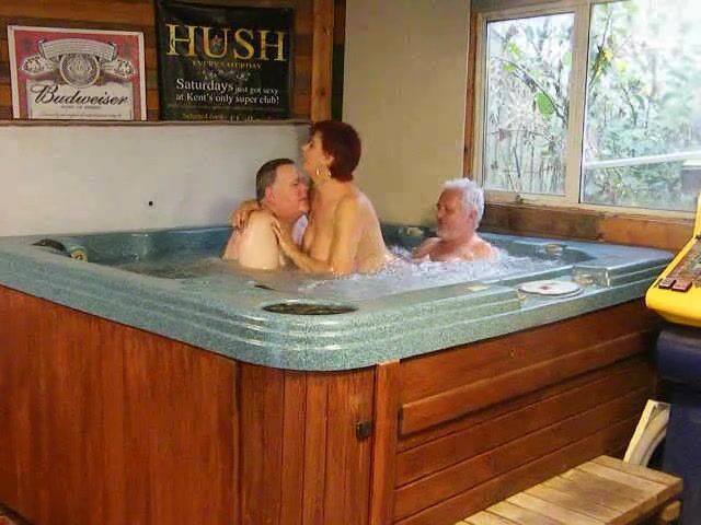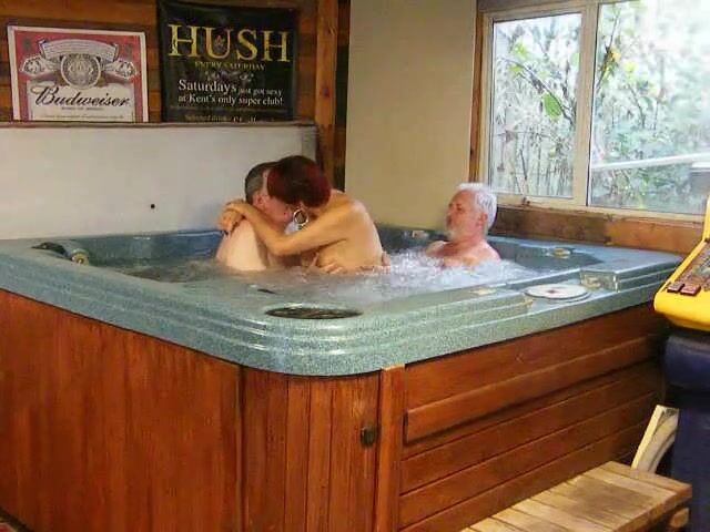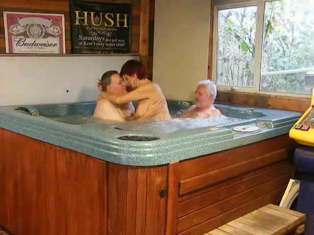 Dimonty e os dois construtores continuam se divertindo na banheira de hidromassagem enquanto transam com ela, chupam sua buceta e ela chupa seus paus.