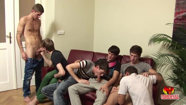 Há muito pau jovem e duro e esperma quente para aproveitar nessa orgia sem camisinha com seis garotos!