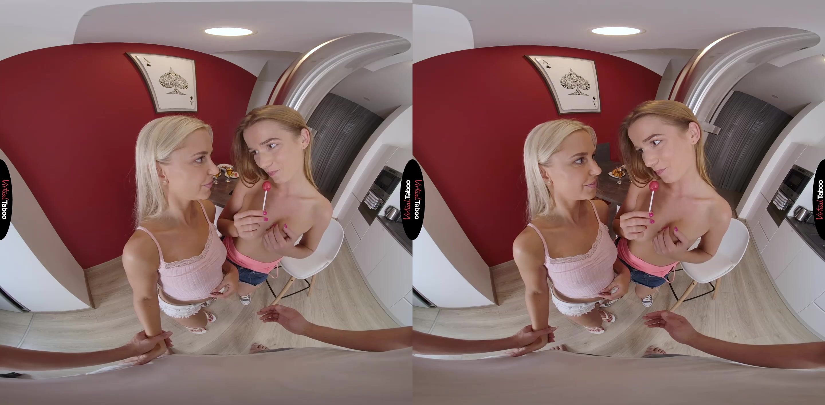 As adoráveis estrelas pornôs de VR de hoje provam que o sangue é mais espesso que a água, mas a luxúria é forte o suficiente para quebrar qualquer tabu. Lola Myluv está namorando o melhor amigo de sua colega de classe Alexis Crystal há alguns meses. Quando o filme pornô de VR começa, as meninas estão aproveitando um dia relaxante em casa. O namorado de Lola chega em casa e lhe dá um abraço. Durante o abraço, ela o pega beijando Alexis. Alexis consegue convencer sua amiga a se juntar a elas. As amigas compartilham e Lola sabe o quanto sua amiga ama um pau grande. Pegue seu fone de ouvido de VR e prepare-se para o melhor em pornografia de realidade virtual enquanto essas duas fofas chupam e chupam seu pau e bolas. Se Lola vai deixar Alexis foder seu namorado, então ela quer algo em troca. Alexis come a buceta de sua colega de classe enquanto é fodida por sua melhor amiga. Os filmes pornôs de VR tornam suas fantasias realidade e transar com essas duas gostosas é o melhor que uma fantasia pode ser. Fica ainda mais intenso quando todos vão para o quarto para um grande final. Segure seu óculos de realidade virtual enquanto Alexis e Lola são fodidas loucamente e maravilhe-se enquanto essas duas compartilham uma grande e cremosa gozada de suco de pau.