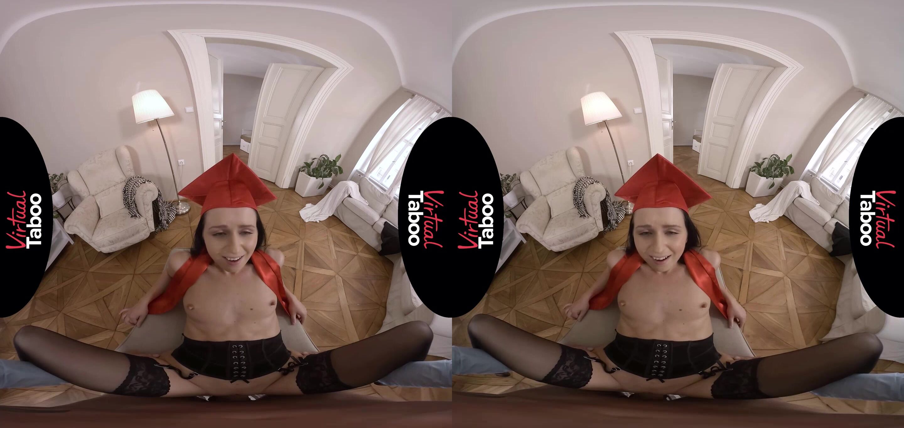 É o dia da formatura da linda jovem Kittina. Ela trabalhou duro para terminar a faculdade com notas quase perfeitas. Seu padrasto está muito orgulhoso de tudo o que ela conquistou e Kittina é grata por ele ter sido tão generoso em pagar por sua educação. Há muito tempo, ele prometeu não apenas pagar por sua escola, mas também dar a ela um presente especial se ela concluísse seus estudos com honras. Ele prometeu dar a ela seu carro e, como ela terminou com notas melhores do que o necessário, a filha espera que ele cumpra sua palavra. Quando o pai finge não saber do que ela está falando, ela se senta em seu colo e começa a procurar as chaves em seu bolso. Em vez de chaves, a filha sente outra coisa. O pai tem um grande pau duro em suas calças. "Isso é para mim?" Kittina pergunta esperando que ele diga sim. Ela tem uma queda por ele há anos e quer ver de perto. A filha revela que não está usando nada por baixo do vestido e tira o grande pau gordo do pai. Ela olha para ele, agradecendo por sempre cuidar bem dela e confessando como ela sonhava em transar com ele. A filha monta em seu pau, sentindo-o bem fundo dentro dela. Ela se abaixa e declara: "Não seja gentil, papai. Foda-me com força como você faz com minha mãe." Ele segue as instruções e dá a ela cada centímetro de seu grande pau. Ela é apertada, mas aceita e goza forte em cima dele. Kittina está nervosa porque não está tomando anticoncepcional e sente o pai se aproximando. Ela quer dizer a ele para sair, mas está muito ocupada gozando até que seja tarde demais. Quando ele sai, sua carga vaza da buceta apertada da filha. Ela pega o carro que queria, mas espera que não haja uma surpresa maior em nove meses.