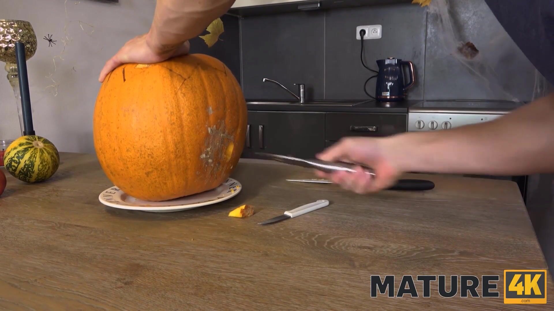 MATURE4K. Mulher madura transa com o enteado por ocasião do Halloween