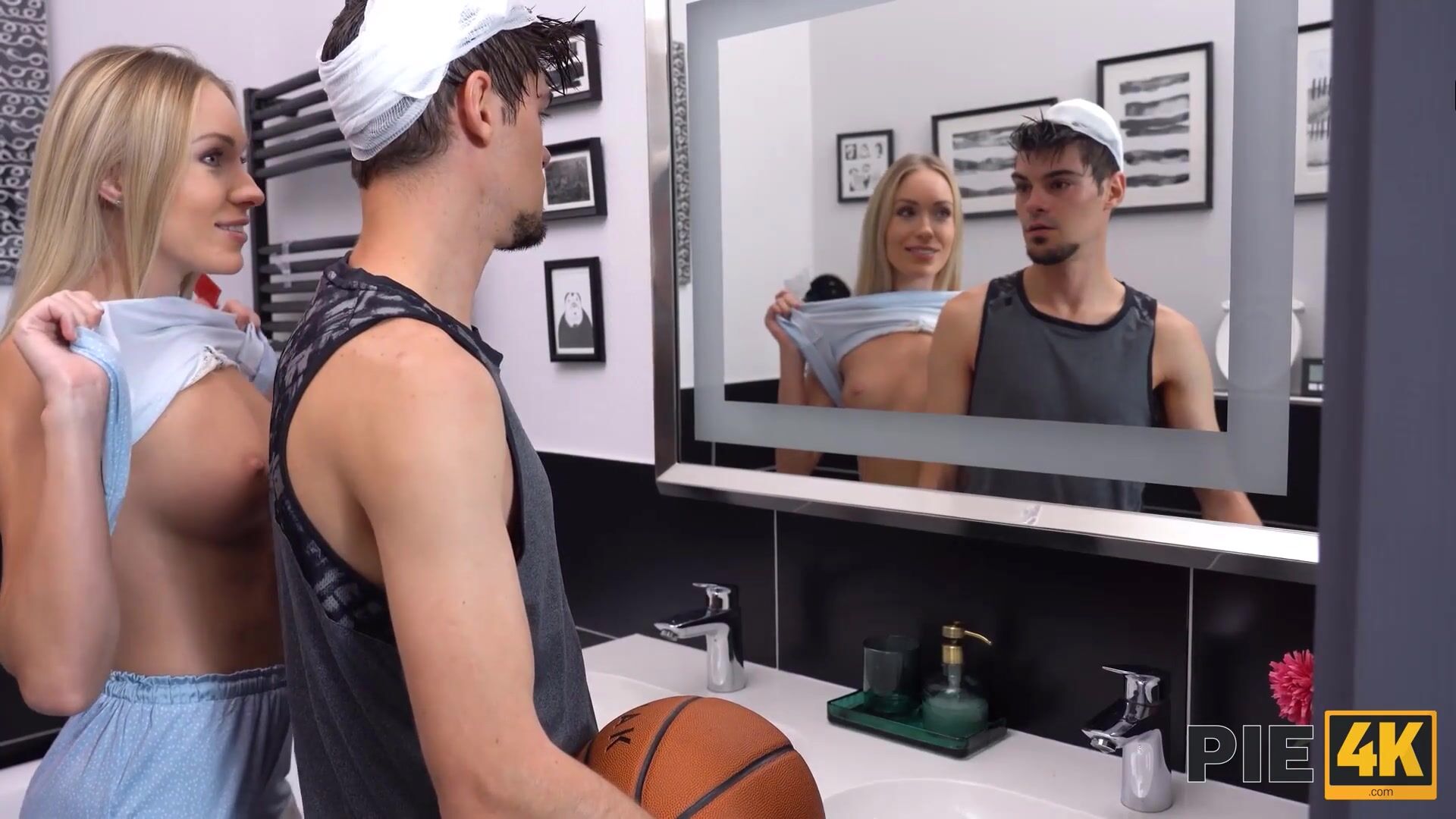 PIE4K. Bela carinhosa deixa sua amada gozar dentro da vagina careca após sexo quente