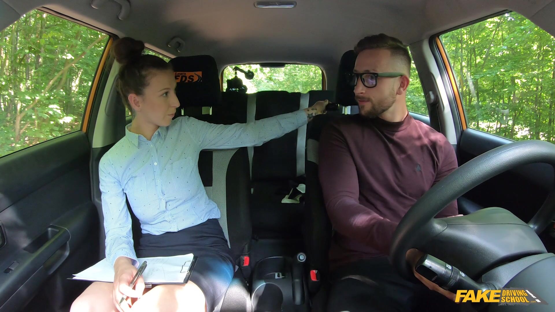 A instrutora MILF Emylia Argan está tendo um dia péssimo. Seu aluno Jason X está atrasado e ela está frustrada. Jason diz que aprendeu em um simulador, mas essas habilidades não se aplicam à estrada! A viagem é turbulenta: Jason bate em coisas, não dá seta e deixa a MILF com medo pela sua segurança. Exigindo que ele pare, Emylia dá a Jason duas opções: lamber sua vagina para acalmá-la ou ir embora imediatamente. Jason escolhe a vagina molhada e lambe Emylia entre as coxas. Excitada, Emylia pede para ele transá-la e, em seguida, faz um boquete safado em Jason. Subindo em cima do pau dele, Emylia usa o pau de Jason para gozar e depois o masturba até ele ejacular em seu rosto!